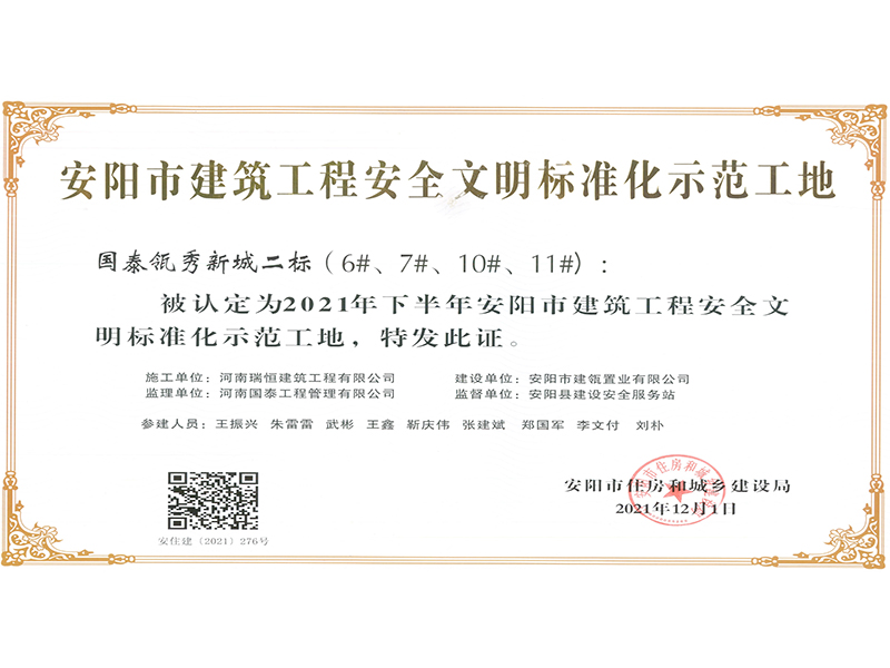 國泰瓴秀新城二標(biāo)段項(xiàng)目被評定為市建筑工程安全文明標(biāo)準(zhǔn)化示范工地